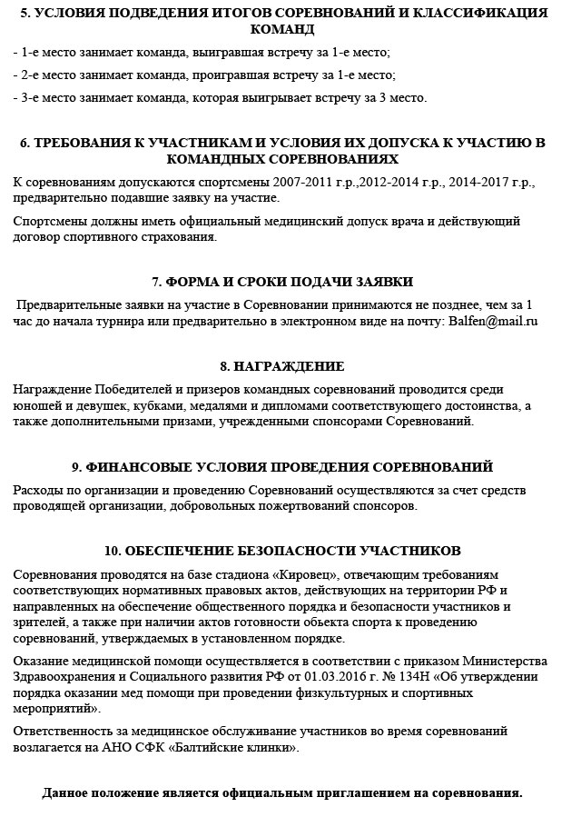 Прием заявок будет проводиться не позднее, чем за 1 час до начала соревнований, либо предварительно по электронной почте: Balfen@mail.ru