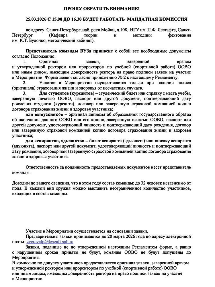 Подготовлено Положение о Чемпионате ВУЗов, который состоится с 30.03.2026 по 04.04.2026.
