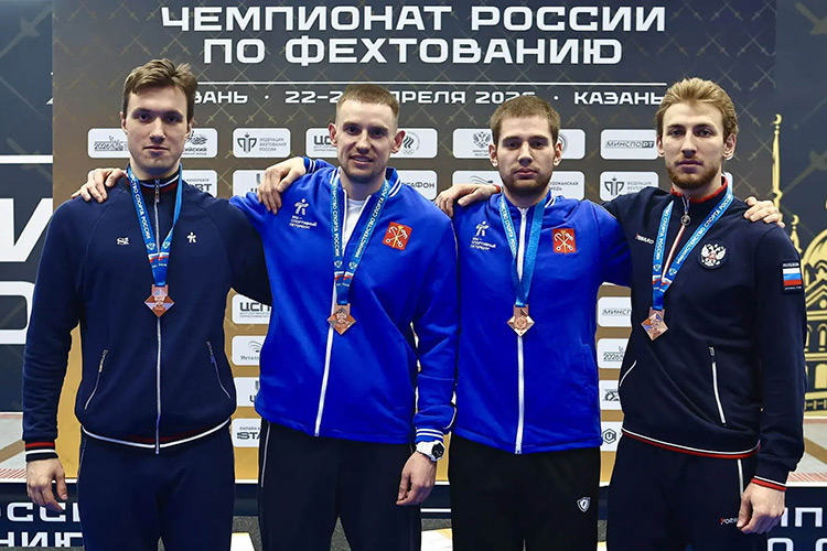 В Казани на Чемпионате России завершились командные соревнования по сабле, на которых петербургская команда в составе Никиты Куклина, Ильи Кучерского, Дмитрия Насонова и Александра Трушакова завоевала бронзовые награды.